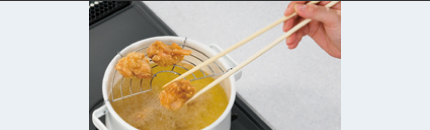 - 油が自然発火する天ぷら火災。Siセンサーコンロなら、温度センサーが温度を見張って約250℃になると自動消火。だから安心です。