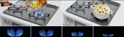 - 煮こぼれや風などで、万一、火が消えても自動でガスを止めます。